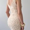 Krem renkli uzun dekolte etek