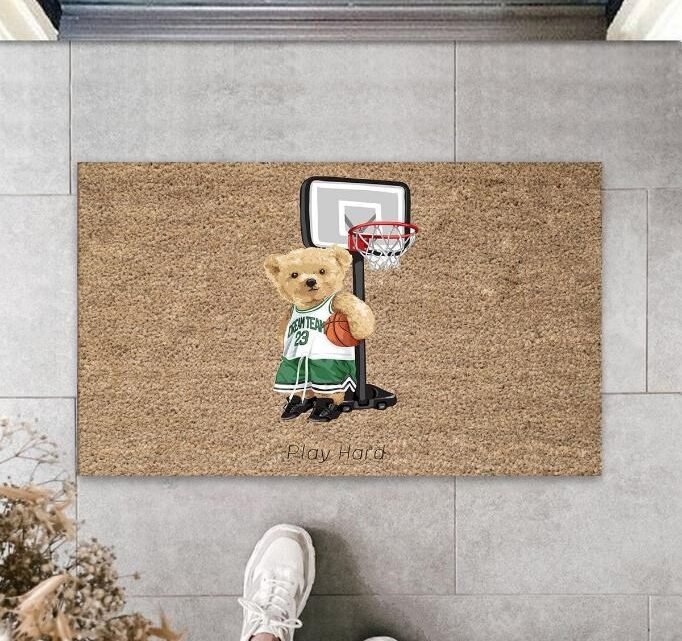Bej Kapı Önü Paspası Basketci Ayıcık Desen K-3349