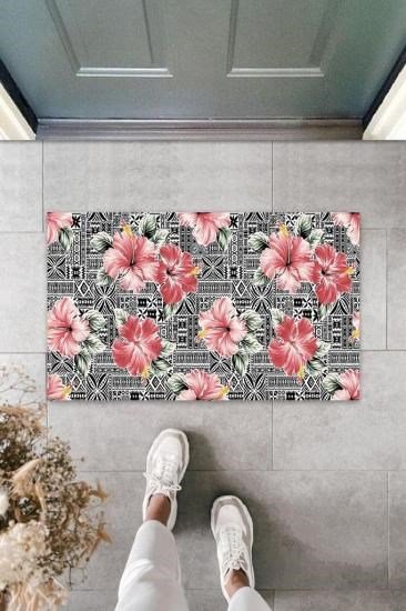 Dekoratif Dijital Zambak Pembe Kapı Paspası Dış Mekan Paspas K-3059