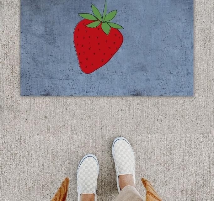 Dijital Baskı Dekoratif Çilek Antrasit Kapı Önü Paspası K-1297