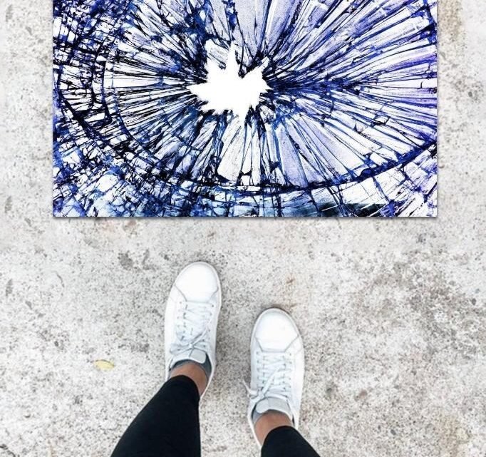 Dijital Baskı Mavi Kırık Cam Desen Kapı Önü Paspası K-1010