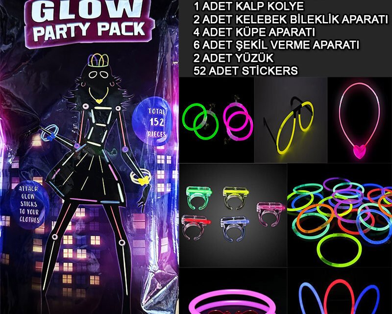 Fosforlu Parti Seti 152 Parça Lüks Kostüm Seti ile partilerinizi ışıl ışıl bir şölene dönüştürün. Bu set, her yaştan eğlence sever için mükemmel bir seçimdir. Herhangi bir parti temasına uyum sağlayabilir.Paket İçeriği40 adet fosforlu çubuk 200 mm40 adet bileklik aparatı1 adet gözlük aparatı1 adet kalp kolye2 adet kelebek bileklik aparatı4 adet küpe aparatı6 adet şekil verme aparatı2 adet yüzük52 adet stickersYetişkin ve Çocuklara UyumludurFosforlu çubukların yanma süresi 6-8 saat olarak belirtilmektedir