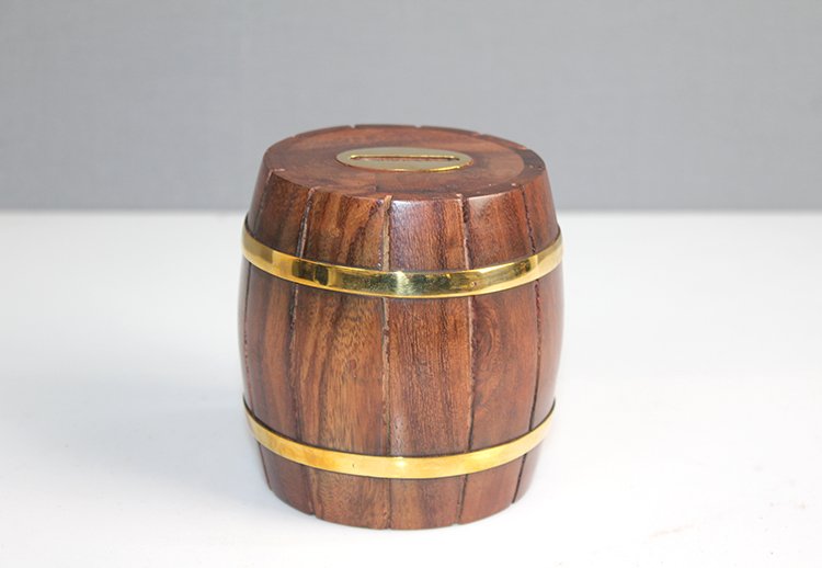 Pirinç Detaylı Fıçı Kumbara Model 1